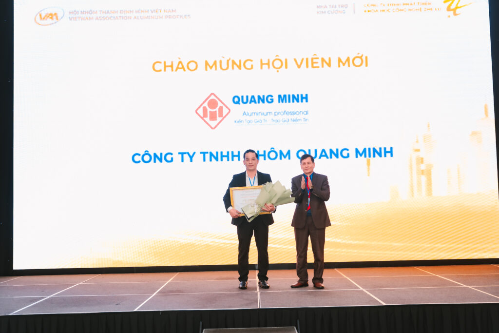 Hội nghị tổng kết năm 2025 không chỉ là dịp nhìn lại những kết quả đã đạt được, mà còn đánh dấu những bước phát triển mới của Hội Nhôm Thanh Định Hình Việt Nam trong việc mở rộng và gắn kết cộng đồng doanh nghiệp ngành nhôm. Tại Hội nghị, Hội đã chính thức công bố quyết định kết nạp hội viên mới là Công ty TNHH Nhôm Quang Minh, qua đó tiếp tục khẳng định uy tín, sức lan tỏa và vai trò đại diện của Hội đối với doanh nghiệp trong ngành.